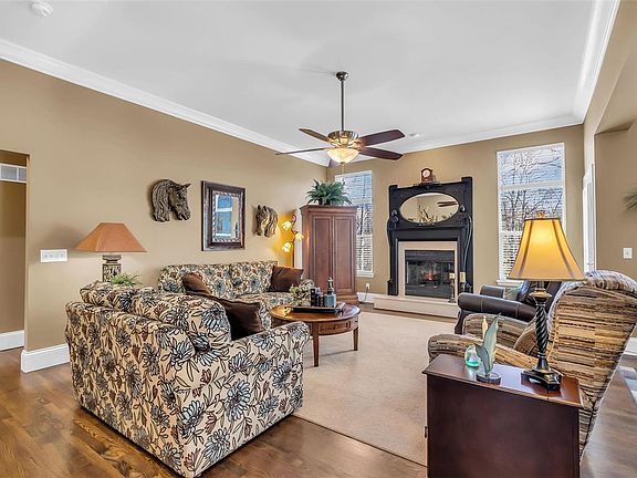 Nestled on a quiet street in Wentzville, this beautifully maintained brick ranch BACKS TO TREES for the ultimate privacy! The inviting living room features a cozy fireplace, hardwood floors, & soaring vaulted 10' ceilings that enhance the open feel of the space. The heart of the home is the immaculate kitchen w/ a center island, gorgeous granite countertops & bay window breakfast nook. Relax in your primary bedroom featuring a tray ceiling & charming bay window. The en-suite bath offers a jetted tub, separate shower, dual sinks & W/I closet. 2 additional bedrooms, bathroom, dining room & laundry room complete the main level. Oversized crown molding & baseboards are just a few custom touches. The walkout lower level is a true BONUS, w/ massive rec room, bar area, 2 bedrooms & full bath. Enjoy outdoor living on the deck or patio, overlooking a fenced backyard. Oversized 3-car garage w/ a 6' bump-out. NEW roof & gutters (24)! Ideally located near highways, restaurants, parks & amenities!