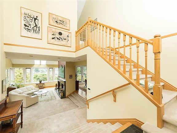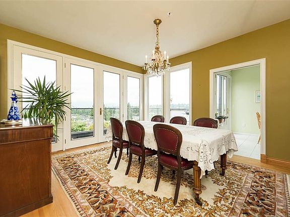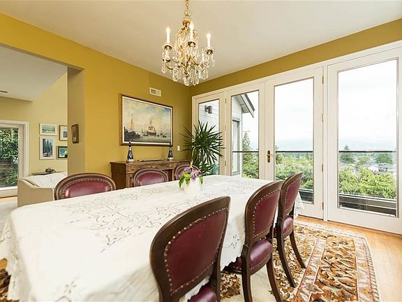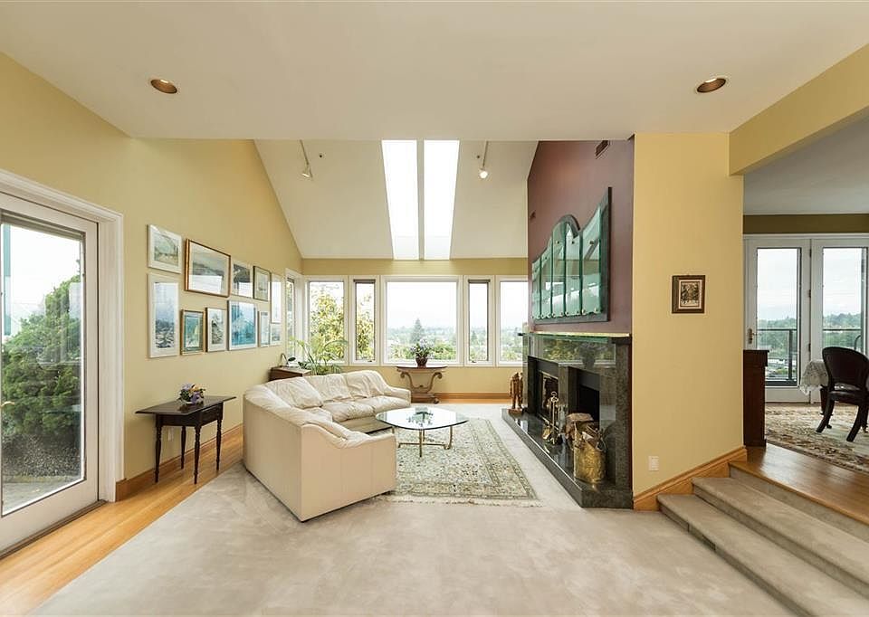 Stunning 3-level custom-built home at 4612 Puget Dr, Vancouver, offering approx. 5,038 sq. ft. of ultra-modern living with panoramic city, mountain, and water views. Features 4 bedrooms with en-suite baths, plus a flex room and den. Grand 20ft foyer with skylight, elegant split living with marble fireplace, and dining room connected to an open kitchen and nook all designed to maximize views. Additional highlights include a family/home theater with yard access, new private luxury elevator, radiant heat, HRV, and central vacuum. The professionally landscaped garden offers a large terrace and BBQ, perfect for entertaining. Double garage included. Ideally located near UBC, Downtown, restaurants, golf, and top schools including Trafalgar Elementary (550m) and Point Grey Secondary (1.5 km).