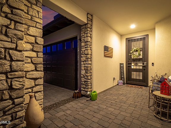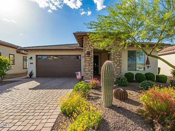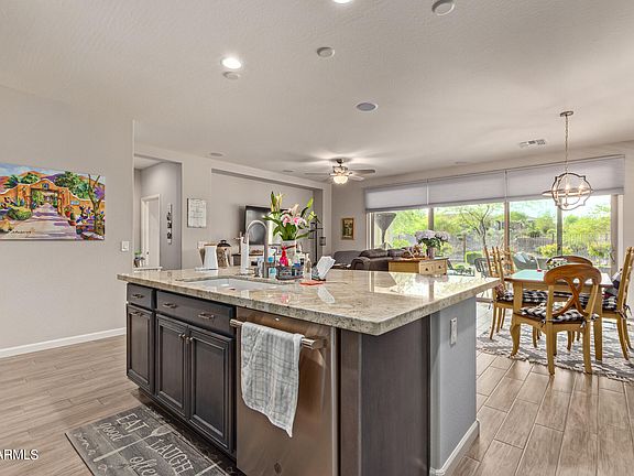 Dream home in Wickenburg Ranch. Pride of ownership shines in this Acacia floor plan. Beautiful, fully fenced, backyard complete with artificial turf and pavers. Enjoy your natural wood burning fire pit while sitting on your travertine block seating wall. Patio has been extended with pavers and a new ramada was recently added. Kitchen has upgraded cabinets, granite countertops in both kitchen and bathrooms. Plantation wooden shutters and grey tile throughout with ceiling fans in each room.