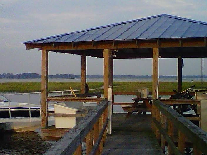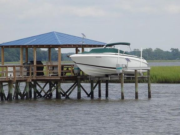 True deep water, high 1.04 acre lot available in beautiful Oak Grove Pointe. Panoramic3 sided views of the Wadmalaw Sound, Shark Hole Creek, Intracoastal Waterway, andChurch Creek. Unobstructed access to the Atlantic Ocean. Close to everything yet awayfrom it all. Large dock facility built at a cost of $120,000 that includes an approximate345' walkway, 16' X 16' covered pierhead, 6-pile 13,000# solar-powered boatlift and an8' X 40' floating dock. The dock also has a ceiling fan, electric power, running water, 2fiberglass dock boxes, and a stainless steel sink with a flsh-cleaning counter.