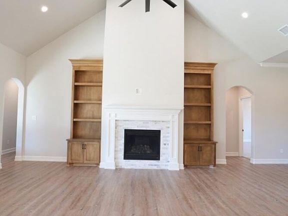 Gorgeous home in Stratford Pointe on a quiet cul-de-sac! This Addison Home features a brick and stone exterior with warm wood accents. The open-concept living and kitchen area boasts a stunning cathedral ceiling and custom cabinetry throughout. Enjoy a spacious back porch, perfectly shaded in the evening—ideal for relaxing or entertaining. Schedule a tour today!