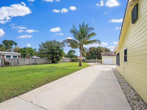 This 3/1 is on a double lot, fully fenced with 2.5 car detached garage. Kitchen has been updated with granite and appliances, tile throughout, impact windows and garage door. Spacious bathroom recently updated with double vanity. This home has a metal roof installed 10/2024. Solar system has been installed. Electric bill is approximately $148/month. Solar is transferrable to the new owner. Great location, very quiet neighborhood and close to schools, dining and shopping. Minutes to i95 and the beach.