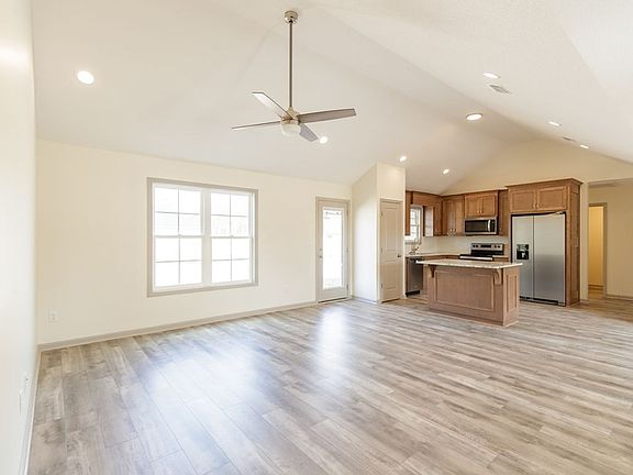 Wood privacy fenceGrand and inviting spaceVaulted ceilingDedicated laundry roomStylish trey ceiling