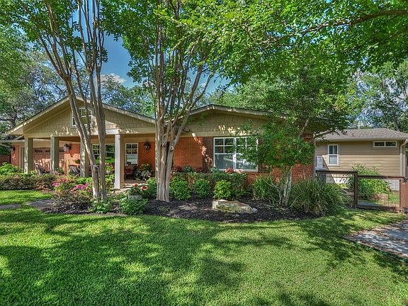 One story brick on almost half acre pie-shaped lot abutting Camp Mabry. Mature landsape with varied trees and shrubs (Bradford pear, crepe myrtles, mountain laurel, climbing rose, etc)for year-round interest and privacy. Fully sprinklered. Room for a pool. Master away from secondary bedrooms. Spacious high-ceilinged great room feaures clerestory windows, many built-ins, Italian tile floor, atrium door. Award- winning Highland Park Elementary. Updated and styled by Deb Primera, former HGTV designer.