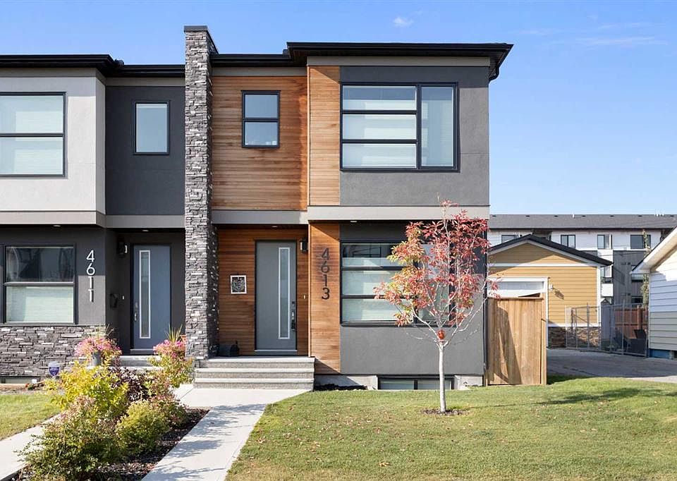 Nestled on an extra-wide, quiet street in the heart of Bowness, this semi-detached family home offers a sanctuary of modern luxury and thoughtful design. As you approach, its contemporary facade hints at the elegance within, a perfect blend of style and functionality. Step inside and be greeted by an open, airy main floor bathed in natural light from expansive west-facing windows. Wide-plank luxury vinyl flooring guides you through a seamless, open-concept layout, where every detail has been meticulously crafted. The gourmet kitchen is the true heart of the home, designed for both culinary artistry and casual gatherings. A stunning, oversized center island with chic pendant lighting and seating for five beckons you, while gorgeous quartz countertops and abundant cabinetry provide an effortless and elegant workspace. The dining area, illuminated by designer lighting, flows effortlessly into the inviting living room, where custom built-ins provide storage and a sophisticated focal point, drawing your eye to the cozy gas fireplace with its elegant wood mantle. Tucked away discreetly is a convenient two-piece powder room for guests, and a dedicated rear mudroom with built-in storage. The journey continues upstairs to a private haven. The generous primary suite is a true retreat, featuring a spacious walk-in closet and a five-piece ensuite that feels like a personal spa. Indulge in the soothing soaker tub or the separate glass-enclosed walk-in shower with a bench, all complemented by dual vanities. Two additional well-sized bedrooms, each with a closet, share a five-piece bathroom with dual vanities. For ultimate convenience, the upper-level laundry room is a dream, complete with ample storage, a sink, and hanging racks. The fully finished basement adds even more living space, with high ceilings that create an open and welcoming feel. Here, you’ll find a spacious family room with a wet bar, perfect for movie nights or entertaining. A fourth bedroom with a walk-in closet and a full four-piece bathroom provide ideal space for guests or a growing family, with an additional storage/utility room. Step outside to your sunny, southwest-facing backyard—an entertainer’s paradise. The patio area is the perfect spot for summer barbecues, while the included playset ensures hours of fun for the kids. After a long day, you can unwind in the relaxing sauna. Parking is a breeze with a detached rear garage and additional parking available out front. This custom-built home is more than just a house; it’s a lifestyle. Its prime location places you moments away from Bow River pathways, Bowmont Park, Market Mall, and Winsport, with quick access to the mountains and downtown. This home offers the perfect blend of peaceful surroundings and urban convenience. Don’t miss your chance to call this move-in-ready gem your own -book your Showing today!