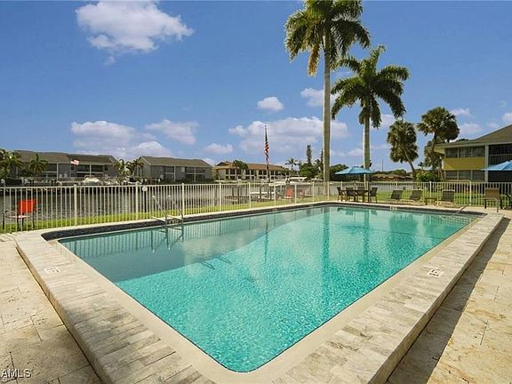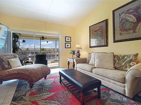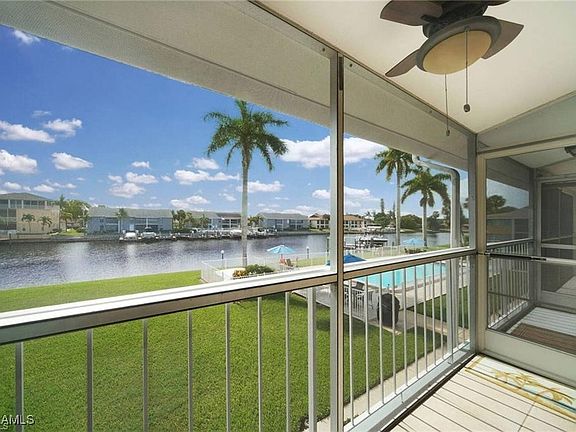 Discover your sunny escape in this beautifully furnished 2-bedroom, 2-bath condo located on the expansive Rubicon Canal one of Cape Coral's widest waterways. This fully equipped unit offers all the comforts of home in a serene, tropical setting. The master suite features a king-size bed, while the guest room includes two twin beds that can easily convert into a second king. Enjoy direct access from your second-floor lanai just a few steps down to the sparkling pool. Walk to vibrant downtown Cape Coral for dining and entertainment. Just bring your toothbrush, your favorite drink, and a Jimmy Buffett playlist paradise awaits!