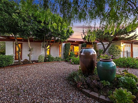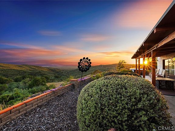 Welcome to your dream single story home with the best views in all of Fallbrook! This stunning house boasts a spacious 2388 square feet, featuring 4 bedrooms, 2 baths, and a 3-car garage, ensuring ample space for both living and storage. It sits on just under 2.5 acres and has room for a possible ADU, horses, or anything you can dream up As you step onto the property, you'll immediately be captivated by the breathtaking panoramic views out of every single window, all the natural light that radiates in and the open and spacious floorpan. Relax and unwind on the covered porch, complete with an above-ground spa, where you can soak in the tranquil atmosphere while enjoying the beauty of the views. Inside, the home you will find a living room to the left alongside the dining room which opens up to the kitchen. In the kitchen there is granite counters, a stylish tile backsplash, and stainless steel appliances. Two brick fireplaces add warmth and charm to the living spaces, creating cozy ambiance on cooler evenings. Vaulted beam ceilings enhance the sense of spaciousness, while wood laminate flooring adds a touch of sophistication throughout the home. Large windows flood the interior with natural light, further accentuating the open and airy feel of the space. Outside, the property is adorned with plush landscaping and avocado groves, providing a lush and verdant setting for outdoor enjoyment. Whether you're hosting gatherings with friends and family or simply enjoying a quiet afternoon in your own private oasis, this home offers endless possibilities. With a newer roof, updated kitchen, and bathrooms, this home combines modern amenities with timeless charm, making it the perfect place to call your own. Don't miss out on the opportunity to own this exceptional property and experience luxury living at its finest!