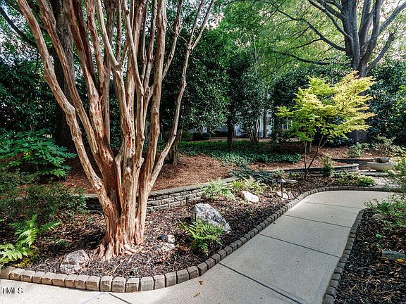 Welcome to your peaceful sanctuary in the heart of Turnberry, where every detail has been meticulously maintained and beautifully curated. Tucked among mature trees on a quiet, wooded lot, this home blends comfort, quality, and serenity. The sellers have created a stunning Zen garden oasis, complete with statues, a water fountain, water garden with Koi fish, meandering stone pathways, and thoughtfully designed landscaping that invites you to pause and breathe. The setting is both private and inspiring, surrounded by nature, yet conveniently located near everything North Raleigh has to offer. Inside, enjoy natural light in every room, thanks to large banks of windows, including many south-facing that frame views of the surrounding trees. The high ceilings and sun-filled family room add to the open, airy feeling. The first-floor primary suite features private access to the elevated deck, offering the feeling of being nestled in the treetops. The kitchen is both stylish and functional, with Dallas White granite countertops, white cabinetry, a stainless steel double sink, and updated Whirlpool appliances, including a new dishwasher and microwave. A spacious bonus room, walk-in attic storage, and a large crawl space with full head height offer flexible living and working space. Recent updates include: New roof (2021) with architectural shingles. New oversized gutters and gutter guards (2021). New first-floor HVAC (2024) with warranty. New carpet throughout. New deck with Trex-style railings (2022). Fiber cement siding (Nichiha) with wood texture finish. Custom front door with stained glass, sidelights & transom. Other thoughtful features include wooden blinds and plantation shutters, a two-level water feature, and a low-maintenance woodland-style backyard with natural landscaping, stone benches, and shaded patio areas. Turnberry is a quiet, friendly community with underground utilities, an optional HOA, and walkable access to restaurants, grocery stores, and parks. Located near I-540, I-440, Crabtree, North Hills, and just minutes from Raleigh's incredible park and greenway system, this home offers a rare opportunity to live in natural tranquility with city convenience.