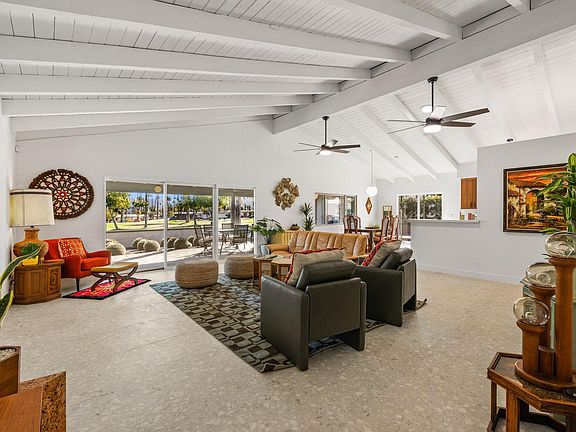 Located on Shadow Mountain Golf Course in highly sought-after South Palm Desert, this fully-remodeled, eclectically-styled home offers a newly-epoxied 2-car attached garage, gorgeous terrazzo-style tile, solar, unobstructed mountain and golf course views and a private pool.