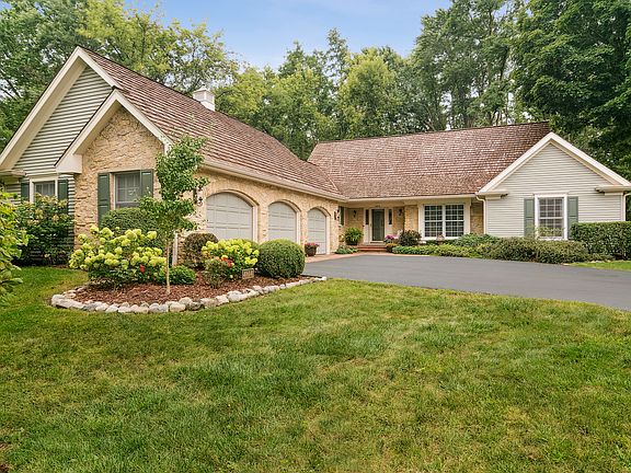 Every so often, a truly special ranch comes to market in The Fields of Long Grove; and this is one of those rare finds. Set on a beautifully landscaped lot, this home blends artisan craftsmanship with casual elegance throughout. From the moment you enter, the dramatic foyer leads to a great room with soaring ceilings, custom fireplace, and finely crafted built-ins-an inviting space that feels both elegant and comfortable. The gourmet kitchen offers generous counter space, abundant cabinetry, and room for multiple cooks, while the adjacent den (formerly the dining room) overlooks the deck and lush gardens. Two private bedroom suites with full baths create ideal retreats, while the third bedroom, currently used as an office, offers flexibility. Newly installed luxury vinyl plank flooring adds a fresh, low-maintenance foundation that complements the home's timeless style. Unique to this property, a year-round greenhouse adjoins the heated three-car garage-perfect for garden enthusiasts. There is even a workshop!! The partially finished basement provides space for movie nights, hobbies, or creative projects. A rare combination of thoughtful design, artisan detail, and casual elegance-this home is a true Long Grove Treasure!