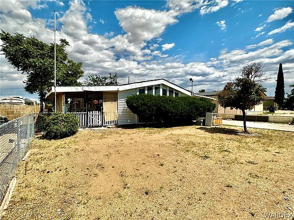 This amazing property is two lots fully fenced in with a double wide manufactured home that has a large open concept inside. Breakfast bar seating around the kitchen, large livingroom with windows on every wall letting in plenty of natural light. The master suite is spacious with a large closet along one wall and soaker tub with a body spray multiple jet shower system and linen storage shelving area. There is a covered carport that will fit two average vehicles and a detached oversized 1 car garage/workshop. There are 2 septic tanks, one for each lot, RV and motorhome parking as well as room for a much more on this huge double lot. Fully fenced in all the way around with chain link fencing and amazing views of the Cerbat Mountains! Come and take a look at this amazing property and see what your future in Kingman, AZ looks like.