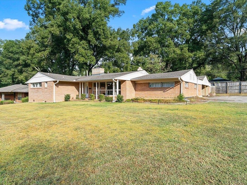 NEW improved price!! OPEN SUNDAY 11/23 1:30- 3:30!! Don’t miss this spacious 1-story mid-century modern charmer in a sought-after location of East Memphis (one of the lower prices surrounding!), just minutes from Downtown, Shelby Farms, and a short walk/bike to the Greenline at Perkins. Featuring 3 bedrooms, 2.5 baths, a 20' living room, large den, and 19' dining room, this home offers hardwoods throughout and a kitchen with a huge island. The fenced backyard with patio is perfect for entertaining, plus there’s an attached rear carport for convenience. Built in the 1950s with updates including stainless appliances and a newer roof, this home combines classic charm with modern comfort in a prime location. So much extra space, extra parking, ad incredibly large kitchen space!