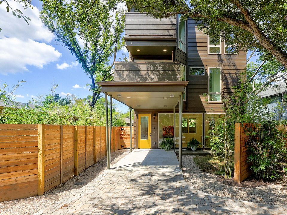 Tucked into the sought-after Park Forest neighborhood, this free-standing new construction condo home feels like a modern treehouse in the city! Expansive casement windows fill the home with natural light and frame leafy views, creating the sense of living among the treetops. The open floor plan features wide-plank hardwoods and a chef’s kitchen with Samsung Bespoke appliances, quartz counters, and custom cabinetry. The owner’s suite offers a private balcony perch, spa-like bath with a separate shower, and a large walk-in closet with lots of built-ins, while an additional balcony extends the indoor-outdoor flow on the third level. Modern comforts include an inverter HVAC system, EV charger readiness, and generous storage closets inside and out. Outside, enjoy mature shade trees that cover the entertainment-ready deck, and a fully fenced yard for privacy. A covered carport and low-maintenance landscaping complete this turnkey retreat. Minutes to downtown, Central Market, Garrison Park, and Austin's vibrant dining scene. The rare and advantageous 1.81% tax rate makes this home perfectly balance nature, design, and convenience.