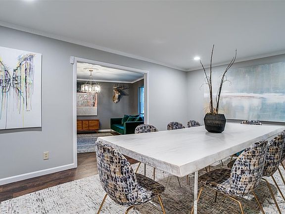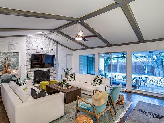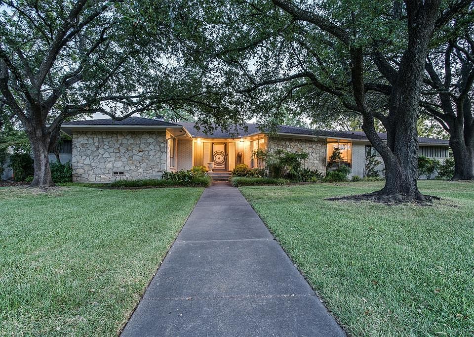Mid-Century modern on a beautiful oversized treed lot. Great opportunity in a desirable location South of LBJ! Stunning original front door w Rondelle glass sidelights. Well-maintained pier & beam home offers a split bedroom floorplan,4 bed, 3.1 bath, over-sized 3 car garage, walk-in closets, 2 large living areas with hardwood floors, vaulted ceiling, stone fireplace, wall of windows, large dining room.Walking distance to private-public schools, Northaven Trail, Crestline Park, retail, restaurants. Close proximity to LBJ, Tollway, 75, I35. Recent updates include: AC Condenser '20; 2017 updates: 2-hot water heaters, plumbing, electrical panel, appliances, fence, hardwoods, fresh paint indoor-outdoor, appliances