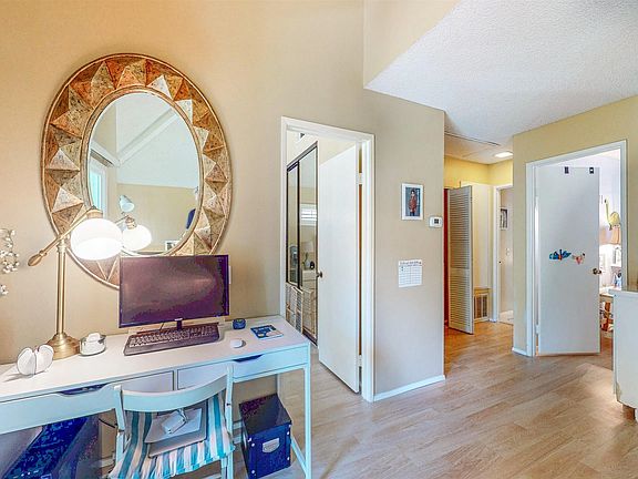 Welcome to this split-level townhouse in the heart of Bonita, designed by award-winning architect Paul Thoryk in his signature contemporary heritage style. This home features an open floor plan with vaulted ceilings, light wood flooring, and abundant natural light throughout. The upgraded kitchen offers granite countertops, white cabinetry, stainless steel appliances, and a decorative tile backsplash. The dining area with designer lighting and 20 ft ceilings opens seamlessly to the living room, creating the perfect flow for entertaining. Upstairs, a versatile loft leads to spacious bedrooms with vaulted ceilings and ample storage. The primary suite boasts a walk-in closet, en-suite bath with dual vanity, and a large private deck. Additional bedrooms provide flexibility for guests or home office use. Community amenities include a pool, clubhouse, showers, and sauna. Centrally located a short walk from the golf course, library, shopping, dining, and top-rated Allen Elementary.