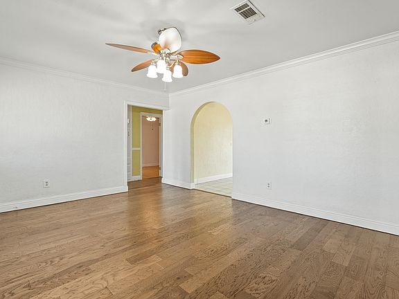 Welcome to this charming 3-bedroom, 2-bathroom home with 1,182 sq. ft. of living space! Step inside to find a perfect blend of character and updates, including a remodeled bathroom that adds modern comfort. The home features original hardwood floors in two bedrooms, vinyl flooring in the laundry room, and primary suite, plus tile flooring in the kitchen and bathrooms for durability and easy care. The backyard is truly built for entertaining—featuring an outdoor kitchen, two large pecan trees for shade, a spacious yard, and a storage shed. A large sliding gate provides easy access to the backyard, perfect for parking a trailer, boat, or other toys securely on the property. This home offers comfort, charm, and functionality both inside and out—don't miss the opportunity to make it yours!
