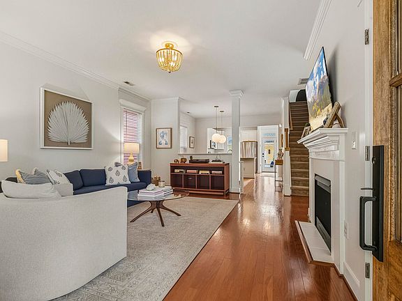 You'll love the charm of this adorable Bedford street, giving an Americana essence. From the tree-lined canopy, to the curated color palate and architectural touches... the Front Porch beckons us back to our childhood, where the energy of the community and little design details evoke charm and modern elegance. As you step through the stunning New Mahogany Front Door adorned with glass panels, you're greeted by a flood of Natural Light that bathes the first floor in warmth. The Updated Touches have such a Timelessness about them, and the Open Flow spanning the first floor feels Inviting and still Cozy. Entertain in style with Updated Trim and Crown Molding gracing the living, dining, and bedrooms, creating an atmosphere of refined sophistication. The heart of the home, a timeless white kitchen with great functionality, allows you to be part of all the action. From there, step outside to a Covered Porch and brand new, On-trend Patio, in what feels like a Cozy Courtyard perfect for hanging with neighbors, friends or family. On the second and third floors, you'll appreciate the New White Oak Hardwood Floors throughout, plus Each Bedroom with its Own Ensuite Bath. The current nursery has the most serene feel, featuring exquisite new Marble Tile, Wainscoting and Wallpaper like you might find in a Pottery Barn catalog. The 3rd floor has a spacious room with Vaulted Ceilings and its own full bath - perfect for a combo office, guest room, bonus room, plus a storage area that is much appreciated. Rest easy knowing the essentials are taken care of, with a Freshly Painted Interior, and an Almost-new Roof and HVAC system - both installed in 2022. Be part of a Vibrant, Welcoming community, with a full lineup of Seasonal Gatherings, Clubs and Amenities. Neighborhood Pool, Tennis, Pickleball, Playground and Trails. Restaurants at the front of Dunn and inside the neighborhood.