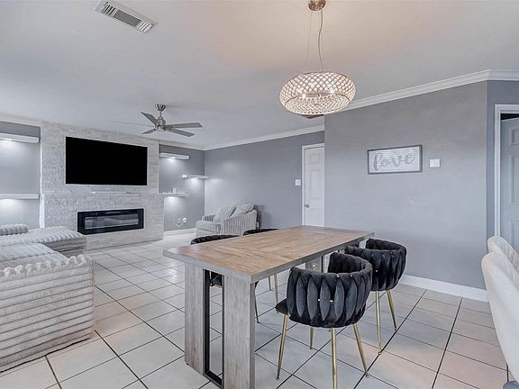 This beautiful home offers modern upgrades throughout. The living space features a stone accented fireplace, creating a cozy ambiance. The kitchen has been completely remodeled and has sliding doors that lead to a full covered patio, perfect for entertaining. All bedrooms are conveniently located upstairs for added privacy. Commuting is convenient with quick access to BW8, 45 and 249. Home includes refrigerator, washer and dryer making move in easy.