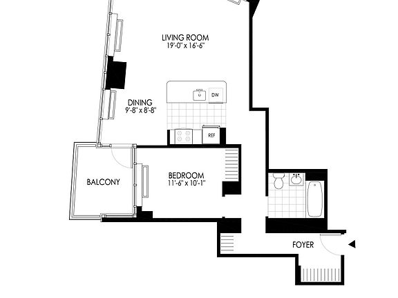 Wonderful 1 bedroom apartment featuring a beautiful island kitchen, corner living area with floor-to-ceiling windows, corner dining area, entryway foyer, great closet space, and a private balcony with northwest exposure with amazing views of Manhattan and the East River.