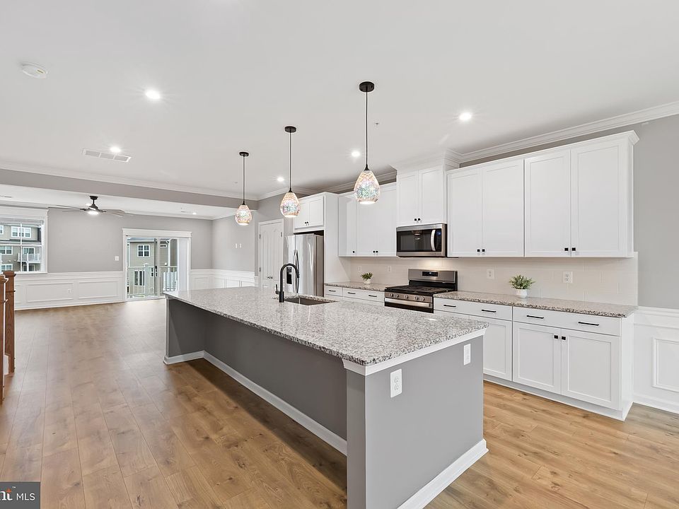 Seller offering a credit to a buyer for $4,860 to cover the first years HOA and condo fees! Welcome to this absolutely, stunning upper-level condo built in 2022, located in one of Ellicott City's most desirable and conveniently situated communities. Offering 3 spacious bedrooms, 2.5 bathrooms, and over 2,300 square feet of beautifully finished living space, this home combines modern luxury with everyday functionality. With this great location you can enjoy easy access to major highways, shopping, dining, and essential amenities. Step inside to find a thoughtfully designed interior featuring oak-colored luxury vinyl plank flooring throughout, custom trim work including crown molding, chair rail, and wall paneling, and freshly painted walls accented with high-end Graber blinds. The gourmet kitchen is a chef’s dream, equipped with oversized granite countertops, stainless steel appliances, and ample cabinetry. The open-concept living and dining areas flow effortlessly, making entertaining a breeze. Upstairs, the primary suite is a true retreat with a tray ceiling, expansive walk-in closet, and a spa-inspired ensuite bath featuring a soaking tub, large tiled walk-in shower, and upscale finishes. Two additional generously sized bedrooms, a full hall bath, and a spacious upstairs laundry room with built-in storage add comfort and practicality. Additional highlights include a private one-car garage, plenty of guest parking, and a tankless water heater for energy-efficient, on-demand hot water. With over 2,400 total square feet of living space and attention to detail at every turn, this move-in-ready condo is waiting for you! Schedule your showing today!