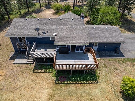 Escape to this 4-bedroom, 3-bathroom home nestled on nearly 5 acres of serene countryside. The home features a large open family room leading to the enclosed patio and oversized deck. Some highlights Include a newly updated bathroom in lower level, man made pond, circular driveway, and Whitworth water. Gas furnace in 2022, and a 2 car oversized garage. Enjoy fresh eggs from the chicken coop and vegetables from the fully fenced garden. The chickens are yours as a house warming gift. The covered gazebo is wired for a hot tub and ready for BBQ's. Additional shop/garage for your toys and an outbuilding for gardening supplies or storage. Enjoy the oversized office or covert it into a 5th bedroom. This is a rare find at an incredible value! Book your sowing today.