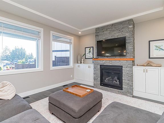 Welcome to this beautifully finished 2,967 sf home in Cowichan Bay, offering comfort, style, and ocean and mountain views. The flexible upper floor features 3 bedrooms plus a family room, or 4 bedrooms if preferred. Quality details include maple cabinetry with ¾" birch interiors, quartz counters, soft-close drawers, engineered wood flooring, tiled baths, 9’ ceilings on the main, flat ceilings throughout, solid interior doors, and detailed moldings. The living room is has custom built-ins and a striking stone-faced gas fireplace. Practical features include a spacious mudroom, main-floor Den, ample storage, and a large crawl space for more storage. Outside, enjoy Hardie Plank siding, a heat pump (heat & cool) with electric furnace backup, in-ground irrigation, tiered garden beds, and a fully fenced yard. Set on a low-maintenance lot in a peaceful location, this move-in-ready home combines thoughtful design, lasting value, and a welcoming atmosphere ideal for growing and active families.