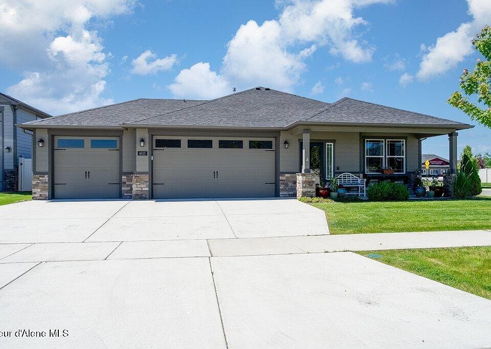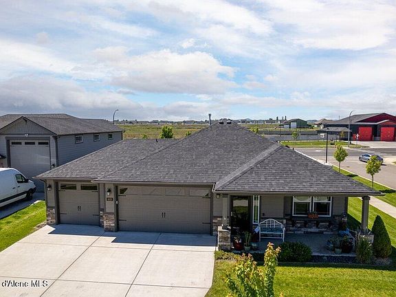 Welcome to this beautifully updated 3 bed, 2 bath home in Post Falls! Built in 2019, this single-level gem offers modern comfort with an open-concept layout, cozy gas fireplace, and stylish finishes throughout. The spacious kitchen flows effortlessly into the living and dining areas, perfect for everyday living and entertaining. The primary suite features a private bath and walk-in closet, while two additional bedrooms provide flexibility for guests or a home office. Enjoy added features like green energy-efficient windows, a 4' garage extension, and a security system for peace of mind. Outside, the fully landscaped yard includes a sprinkler system, water fountain, outdoor shades, and permanent holiday lights, plus a 3-car garage for all your storage needs. Located near Tullamore Park, with easy access to schools, shops, and I-90, this home has everything you need and more!