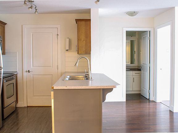 Top-floor 2 bed, 2 bath unit with soaring ceilings and mountain views! Vacant and CMHC-friendly—perfect for first-time buyers. This bright, functional home features a massive laundry room, smart layout, and 2 parking spots. Located on the quiet side of the complex, just steps from transit, schools, the hospital, and the trendy new shops and restaurants at District 1881. Don’t miss this rare top-floor gem!