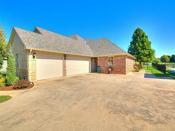 Oversized 3 car garage with built-in workbench and storm shelter. Staircase from inside home or garage leads to attic which could be finished out for additional living space.