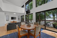 Gas fireplaceMature treesLakefront homeVaulted ceilingsGranite countertopsSpa-like bathroomSerene primary suite
