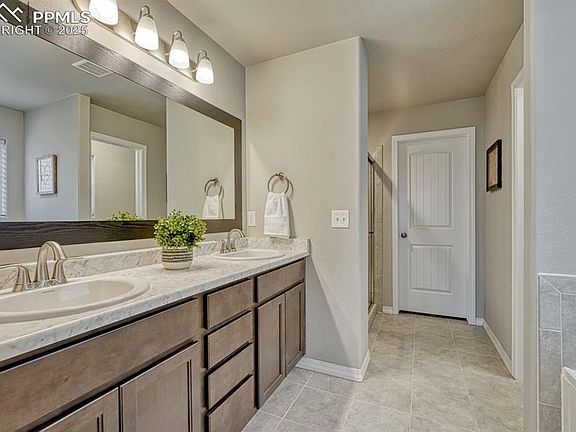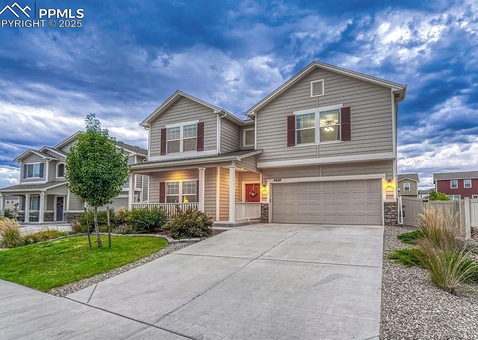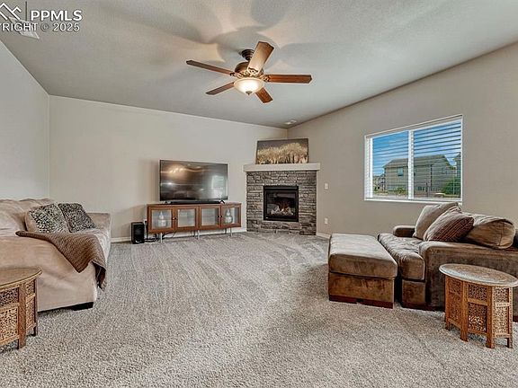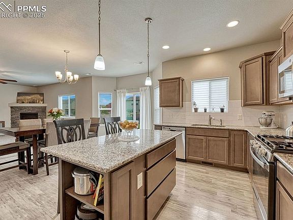 The One That Feels Like Home – This thoughtfully designed 3 bed, 2.5 bath home and offers comfort and flexibility. Located in The Enclaves at Mountain Vista Ranch, this property includes a versatile main-level space that can function as a home office or 4th bedroom to fit your lifestyle needs. The open-concept main floor features a bright kitchen with granite countertops, stainless steel appliances, pantry and center island—flowing seamlessly into the dining and living areas. A stone-surround fireplace adds warmth and charm for those chilly Colorado nights, while sliding doors lead to the patio and fenced backyard, perfect for outdoor gatherings. Upstairs, the spacious loft offers ideal space for a media room, home gym, or second living area. The primary suite includes a luxurious en-suite bath with soaking tub, glass-enclosed shower, and walk-in closet. Two additional bedrooms also include walk-in closets, providing ample storage. The upstairs laundry room is functional and spacious, with built-in storage and easy access from all bedrooms. Enjoy mountain views from the upper level and the convenience of being close to the growing Marksheffel corridor. You’ll get quick access to restaurants, retail, theaters, with more on the way. Located in School District 49, with convenient commutes to central Colorado Springs and beyond. Don’t miss this opportunity to own The One That Feels Like Home in a rapidly growing east side community!