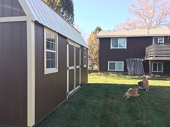 New from top to bottom! Look at those Floors! New Paint, Kitchen and Baths, too!! CORIAN counter tops in this newly remodeled kitchen with pull-out drawers in pantry. CORIAN in the bath with double sinks separated from toilet and bathtub for privacy. Spacious living area with high ceilings and brushed metal railing. New insulated windows to keep the warm summer out, along with a gorgeous maple tree for shade. Entertain on the large deck overlooking the flat back yard with sprinkler system. 10x20 Premier Building Shed with 2 side Lofts. Beauty abounds!!!