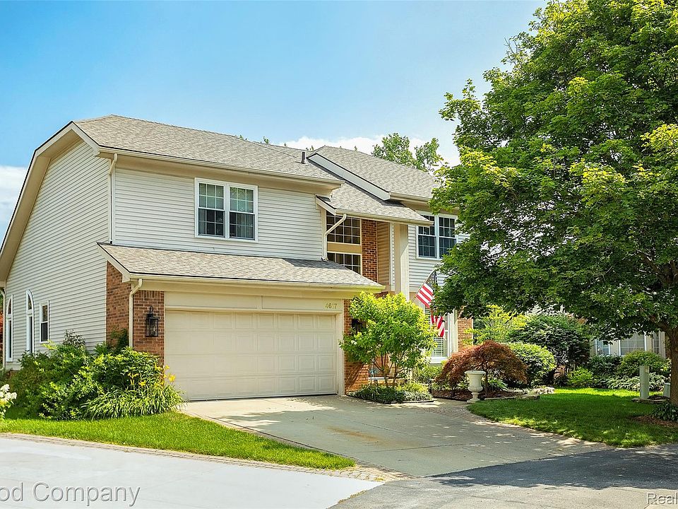 HOA fee includes homeowners insurance, new roof (4 years), new HVAC (5 years). Matterport virtual walkthrough available on Homes. This is the one! Stunning brick colonial in a quiet cul-de-sac backing up to a park-like setting. As you enter the home, a two story foyer welcomes you in grand style to the formal living and dining room. The back of the house has a vaulted ceiling in the great room with picture windows and a grand fireplace ready for cozy holiday gatherings. Huge eat-in kitchen with doorwall to an entertainment-ready back deck. First floor laundry conveniently located nearby. Upstairs find a huge primary suite and two additional generously sized bedrooms. Lower level boasts more entertaining space with large rec room featuring slate tile floor, fireplace and beautiful Cherry wet bar. The backyard is a stunner...longtime owners have poured into the space, and in addition to the deck and patio, (gazebo stays!) there are blooming perennials and a lovely variety of trees dotting the property. The focal point is the wetlands that will have you reaching for your binoculars to admire the various birds and wildlife. This home is one of a kind! Welcome home.