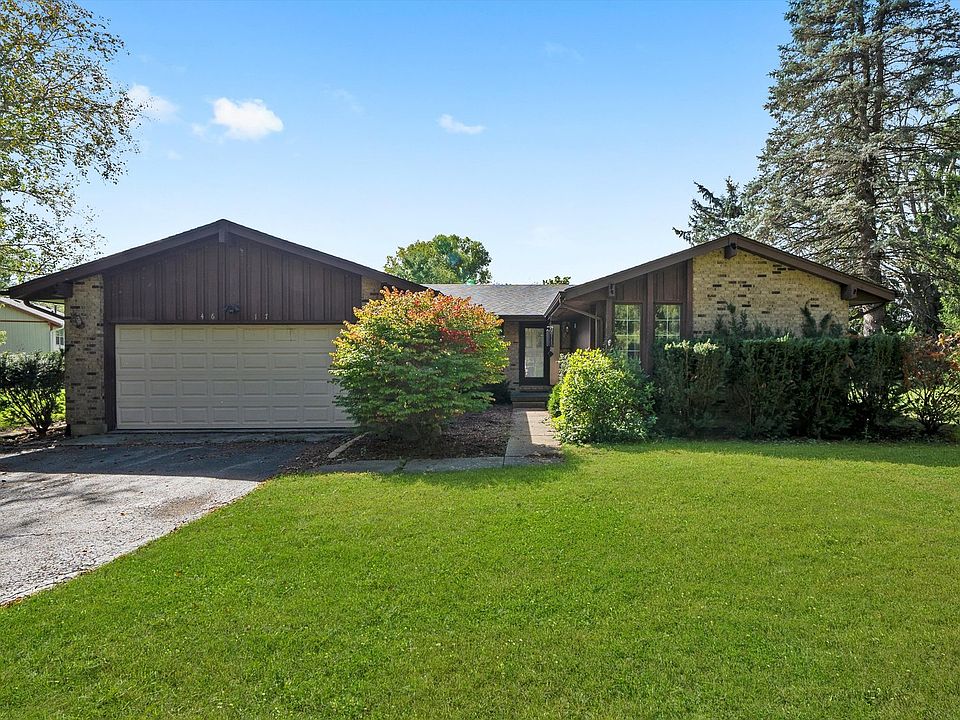 This three-bedroom, two-bath ranch offers over 1,600 sq ft of living space, a functional layout, and plenty of potential. A welcoming foyer opens to a spacious living and dining area, designed for easy flow and everyday living. The kitchen provides space for a breakfast table, while the adjoining family room/den with dual sliding doors leads directly to the expansive backyard. The primary suite includes a full bath and dual closets, while two additional bedrooms share a hall bath with neutral finishes. First-floor laundry hookups off the attached two-car garage add convenience, and an extended driveway provides extra parking. A large shed offers bonus storage. Set on a desirable corner lot of more than half an acre, the property is surrounded by mature trees for privacy and shade. With a new roof (2024), this home is ready for your personal touch and customization. Located in a golf-cart-friendly community within sought-after Johnsburg schools, this home blends space, value, and potential in one.