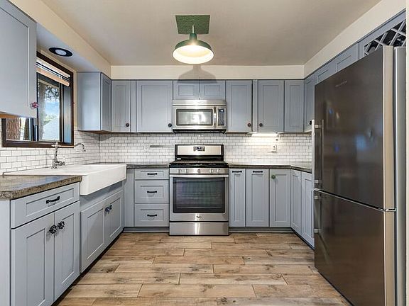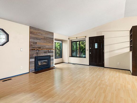 Stylish one-level ranch with 3 bedrooms and 2 bathrooms, ideally located between the Creston-Kenilworth and Woodstock neighborhoods. The kitchen connects to the dining area, while the living room features vaulted ceilings and a cozy gas fireplace. Sliding glass doors open to a spacious patio deck, fenced front yard, and private fenced backyard which is perfect for entertaining or relaxing outdoors.