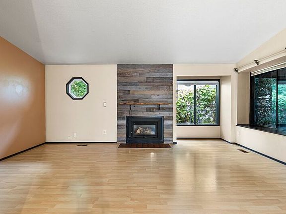 The master bedroom offers a private retreat with generous closet space, while two additional bedrooms sit along the central hallway. Central air and heating, plus a full-size washer and dryer, provide year-round comfort. A 2-car garage and large driveway add convenience to this unique and inviting Portland home.