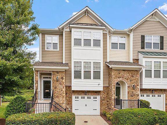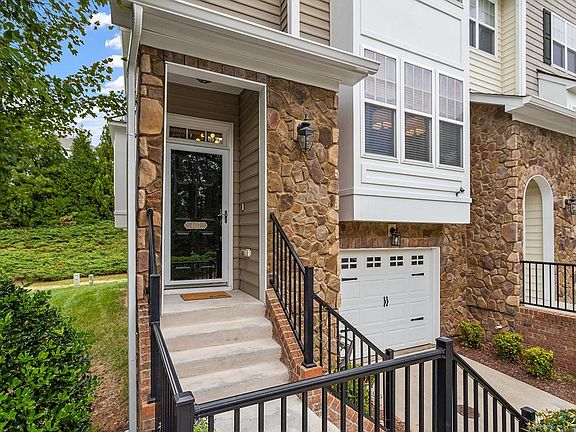 Upgraded end-unit garage townhome tucked away in a quiet section of Glenwood North w/views of trees & natural areas from every window! Open, award-winning floorplan w/high ceilings, archways & loads of natural light. Recently updated w/Luxury Vinyl Wide-Plank floors, White Painted Soft-Close Cabinets, Custom Tile Backsplash, sleek Black Granite Countertops w/matching Fireplace Surround, Light Fixtures/Fans, Vanity Mirrors/Cabinet & Custom Paint Colors for a fresh, modern look. Stainless appliances include Gas Range, Microwave, Dishwasher-R/W/D Negot. First floor bedroom features full bath, spacious closet & private entry w/french-door opening to the covered patio & big backyard. This room is great for guests, home office and/or bonus rm for entertaining. Plenty of Guest Parking! Low-maintenance exterior/lawn & awesome amenities incl resort-style pool, clubhouse & fitness center. Well-maintained by original owner-NEW Roof, Recent Powerwash & CarpetClean. Quality construction conveniently located off of Glenwood Ave-Walk to restaurants/shops-Minutes to 440/Crabtree, 540/RDU, Wade/PNC. Flexible Closing!