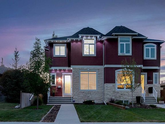 Custom-Built Infill Steps from Bowness Park | 3 Total Bedrooms + Bonus Room | 3,000+ sq.ft. of Living Space | - Live in the best part of Bowness, on a quiet street just steps from Bowness Park and the Bow River. Enjoy inner-city living with a small-town feel, surrounded by parks and pathways, while still minutes from downtown, Market Mall, the University of Calgary, Foothills Hospital, and quick routes to Stoney Trail and Highway 1 for an easy escape to the mountains. Skip the post-move expenses of a new build. This home already includes premium window coverings, central air conditioning, central vac, full landscaping (with loads of perennials), permanent exterior lighting, and a finished double garage with storage racks. Inside, the main floor is filled with west-facing light and offers a smart, open layout that balances flow and privacy. The spacious living area centres around a three-sided gas fireplace and built-in speakers, complemented by upgraded hardwood and 10-foot ceilings. The chef’s kitchen impresses with full-height cabinetry, a large granite island, stainless steel appliances, gas range, and elegant tile backsplash. The dining area overlooks the fully finished backyard, perfect for entertaining, and the front room provides ideal space for a home office or den. Upstairs features two bedrooms plus a large bonus room easily converted to a third bedroom. The primary suite is a retreat with vaulted ceilings, skylights, a huge walk-in closet, and a luxurious ensuite with heated floors, dual sinks, and a private water closet. A convenient upper laundry with sink and built-ins, along with a hallway workstation, add extra function. The developed basement continues the high standards with 9-foot ceilings, a spacious rec room with gas fireplace, a third bedroom, full bath with heated floors, and rough-ins for a wet bar. The private, low-maintenance backyard features patio stone, mature trees, a fire table, and exterior accent lighting that extends to the garage. Bowness is one of Calgary’s most beloved communities, home to Bowness Park, the new and exciting University District, Bowmont Park, and Shouldice Park, plus quick access to Calgary Farmers’ Market West, Winsport, and top schools. Inner-city living doesn’t get better than this, a beautiful home and a sound investment in one.