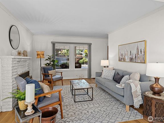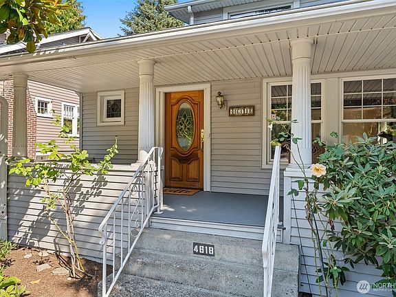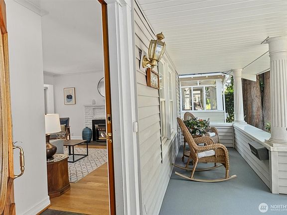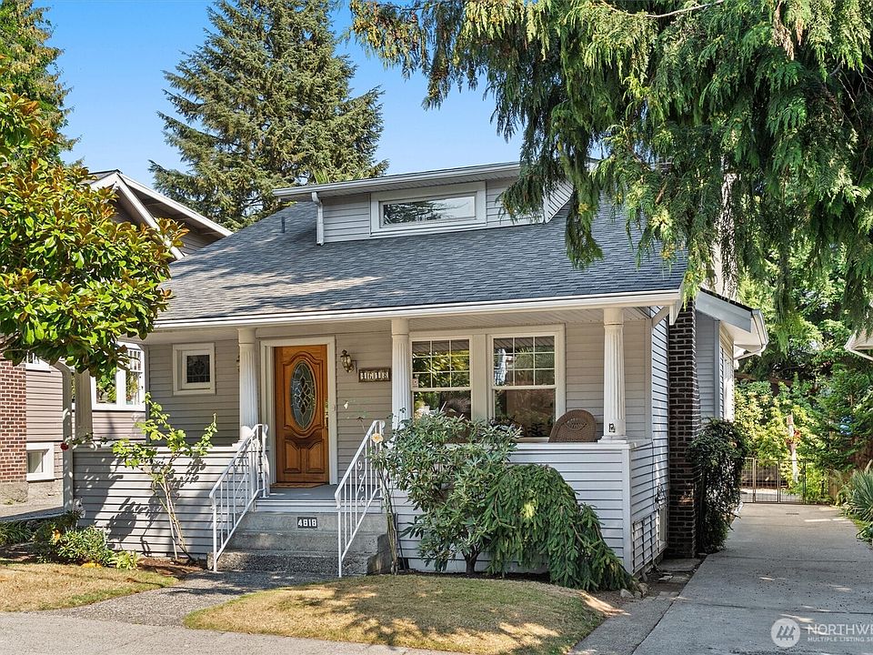 Charming Wallingford Craftsman on quiet street, original hardwoods and cozy gas fireplace. Brand new electrical to street, newer roof, furnace provide peace of mind. Spacious living and dining rooms, bright kitchen. A back office or sunroom invites garden views. Main floor - primary bed, ¾ bath, bonus room; upstairs - 2 bedrooms and ½ bath with option to expand. Extra attic space adds future potential. Enjoy the covered front porch, sunny back deck with hot tub, lush yard, garden. Basement ready to finish for more living space, use as shop, laundry, and storage. Driveway - add EV charger? Great value to buy into the neighborhood and update to your style. Stanford Elem Geo Zone. Quick access to I-5, 520, and the Eastside. Wallingford awaits!