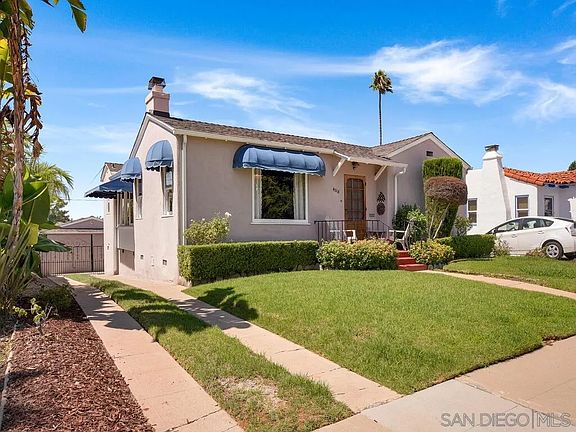 This one won't last long at this price! Vintage 1930's charm in the historic neighborhood of El Cerrito. Big living room, original hardwood floors, gorgeous fireplace (non working), & picture window. French country kitchen w/lots of cabinets, Silestone tops & built-ins. Small 3rd bedroom currently used as den w/French doors & can be converted back. Laundry room could be made into 2nd bathroom. Large back yard w/fruit trees & mural by local artist, Nancy Isbell. Major Upgrades: New Roof and gutters 2017; New Trane AC, furnace and ducts 2020; Whirlpool Fridge 2021, new water heater 2022. Vibrant El Cerrito was built in the 1920s, 30s and 40s, & has many delightful homes. Minutes to all that San Diego has to offer.