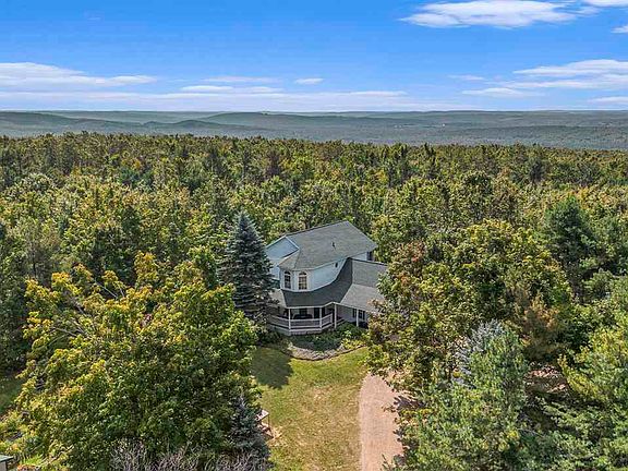 Open House Saturday October 4th from 10am-12pm. Hosted by Ethan Swiger. Looking for a home that blends modern comfort with room to roam? This property offers almost 9 acres, a finished walkout basement, a 3-seasons room, and a spacious master bedroom. Quality touches like hardwood floors, solid surface countertops, and 9-foot ceilings make the home feel bright and inviting. Step outside to enjoy the wrap-around covered porch or head to the 40x48 pole barn with 14-foot ceilings, offering more than enough space for animals, campers, or your favorite hobbies. Established gardening space and acreage for outdoor play, plus close proximity to snowmobile and ORV trails, this home is the perfect base for both relaxation and adventure
