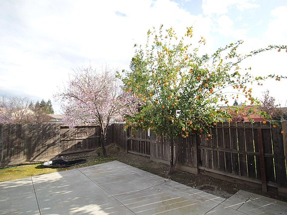 Welcome to this charming single-family home in the coveted Bellevue Ranch east village, offering a prime location within walking distance to the new El Capitan High School and a short drive to Downtown, UC Merced, and the new Yosemite Crossings shopping center. This well-maintained home features several upgrades, including fresh interior paint, new LVP hard flooring, and new blinds downstairs. The front yard is shaded by a majestic conifer tree, providing relief from the summer heat. Step inside to discover high ceilings with clerestory windows in the living room, dining area, and open kitchen, creating a bright and airy atmosphere. The family room features a gas fireplace, large windows and a sliding door which offer abundant natural light and access to the backyard. Downstairs, you'll find a half bathroom and a spacious laundry room. Upstairs, the home boasts a master bedroom suite with a walk-in closet, along with three additional bedrooms and a hallway bathroom. Ample storage space is provided by numerous cabinets throughout the home. Outside, the backyard features a mix of concrete and grass, with citrus trees adding a touch of greenery and producing delightful yellow fruits. The property also includes an attached two-car garage. Best of all, there are NO HOA fees!