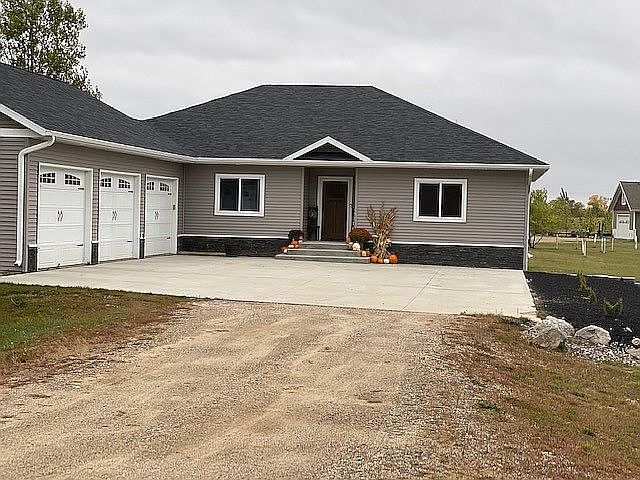 A beautiful custom built home with 5 bedrooms and 4 baths (master suite on both levels) located on 1.45 acres very close to town. This open floor plan house is modern and updated, featuring natural gas in floor heat, 2 fireplaces, ICF poured walls, heated 30x40 attached 3 stall garage, large closets, maintenance free deck and fence, and lots of storage. The beautiful mix of floor coverings, custom cabinets, and wet bar makes this place a must see.