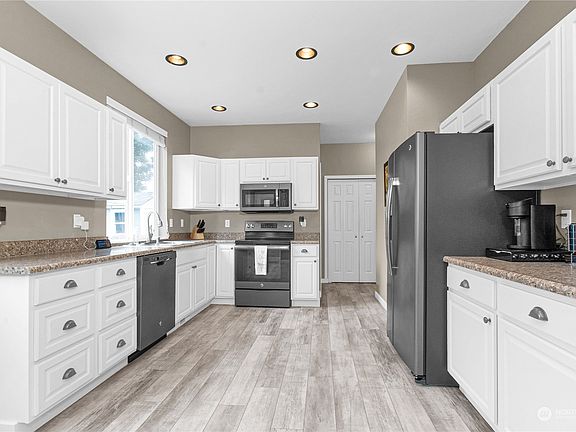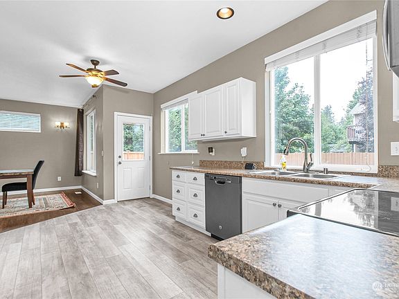 Discover this stunning home in the gated Fairway Estates, nestled on a peaceful cul-de-sac. Well maintained home w/new Furnace in 2023 and AC, Roof in 2019, new paint & water heater. Walk into home w/open concept living w/gas FP in LR, large DR with big windows for light and seamlessly flows into large, updated kitchen with new appliances. Utility RM w/all appliances staying, and half bath round out the downstairs. Upstairs loft for office/entertainment area and 4 Bedrooms/Main Bath. The Primary BR offers a luxurious 5-piece bath and a walk-in closet. Highlights include RV parking, a storage shed, a gravel fire pit, and ample backyard space. Conveniently located just around the corner from the golf course, JBLM, Shopping and Freeways!