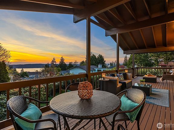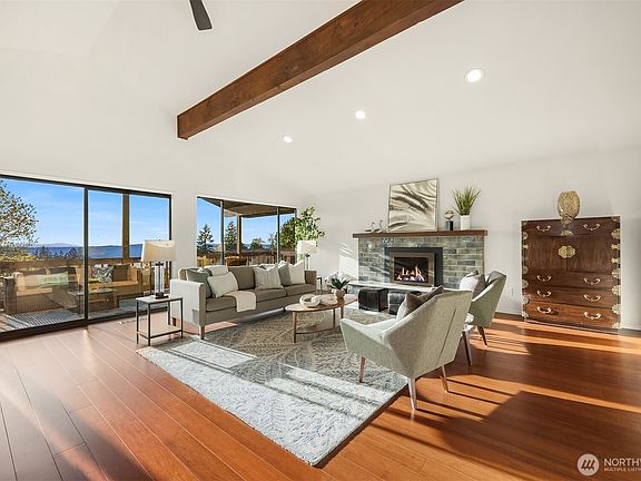 Soak in the essence of the PNW in this meticulously maintained & thoughtfully updated home ft. exquisite views of the Puget Sound, Whidbey Island & Olympic Mountains. Luxury touches & upgrades made throughout- incl. completely remodeled bathrooms w/ custom tilework & heated floor, new laundry rm in 2022. Remodeled chef's kitchen & open-concept layout ideal for entertaining. Bamboo and premium engineered hardwood floors, Italian tiled fireplace, new HVAC/heat pump, and so much more! Located at the end of a quiet cul-de-sac, this South-facing home with Westward views offers fantastic natural light during the day & unforgettable sunsets at night. Expansive covered deck & patio perfect for indoor/outdoor living & entertaining all year-round!