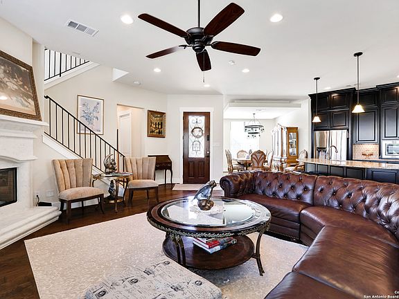 Welcome to Your Dream Home in a Cibolo Canyons Resort Community Experience the perfect blend of elegance, comfort, and convenience in this stunning 4-bedroom, 4.5-bath two-story residence, ideally situated just moments from the JW Marriott and the prestigious TPC Golf Course. Offering resort-style living in one of the city's most sought-after communities, this home is designed to impress. Step inside to soaring ceilings, rich hardwood floors, and an open-concept layout that balances sophistication with everyday functionality. At the heart of the home lies a gourmet kitchen featuring 42-inch cabinetry, a spacious island with bar seating, premium finishes, and all appliances-an ideal space for the culinary enthusiast. The living area showcases a striking stone fireplace, creating a warm and inviting atmosphere perfect for entertaining or relaxing. A flexible fourth bedroom offers endless possibilities as a dedicated home office or secondary living space to fit your lifestyle needs. The private primary suite is a true retreat, complete with a spa-inspired en-suite bath featuring dual vanities, a skylight, and a custom walk-in closet designed for both style and function. Each additional bedroom is generously sized and includes its own private bath, providing comfort and privacy for family or guests. A convenient half-bath is also available for visitors. Outdoor living is just as exceptional, with an expansive deck and a covered patio ideal for year-round enjoyment. Whether hosting gatherings or unwinding under the stars, you'll love the seamless connection between indoor and outdoor spaces. This full-amenity community offers so much more than a home. Residents enjoy access to a luxurious pool, clubhouse, basketball and tennis courts, and scenic walking trails. Lawn maintenance and 24-hour security provide peace of mind, while a calendar of community-planned events creates countless opportunities for entertainment and connection with neighbors. Special Buyer Incentives: The seller is offering concessions to help cover some of your closing expenses. Additionally, the current lender has confirmed there is an opportunity to assume the existing loan at a much lower interest rate than what's currently offered in today's market-making this home an even more attractive investment. This isn't just a home; it's a lifestyle. Don't miss the opportunity to own an extraordinary property where luxury meets convenience