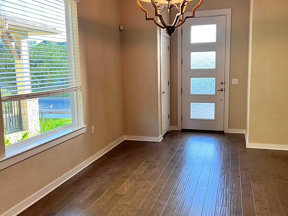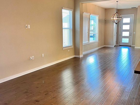 This spacious 4 bed, 3 bath townhome is in the heart of Mueller just a 5 minute walk away from the Mueller Farmer's market, HEB, Mueller lake park, restaurants and more. The primary bedroom is upstairs and features two full sized walked in closets, dual vanity, garden tub and walk in shower. Two spare bedrooms share another full sized bath upstairs and the lower level has one full sized guest room and bathroom, perfect for guests or use as an office. The home features engineered hardwood downstairs, a massive kitchen with ample cabinet space, and a patio between the detached 2 car garage and the home.