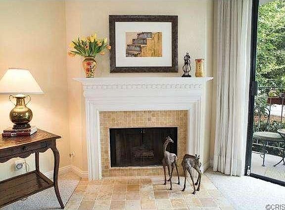 Must have - lite & brite 2 bdrm, 2 bath, 1,506 sq. ft. condo - Stylishly upgraded, well appointed abode in move-in condition is located at rear of complex and faces away from street. Double balconies have garden view. Upgraded kitchen boasts ceramic tile counters, cabinetry, pendant lights w/posh dining area & spacious inviting living room w/fireplace & tumbled travertine hearth which all your guests will love when they come to be entertained. Master bdrm has high ceiling & second fireplace. Crown molding throughout. Elevator access to gated subterranean garage w/storage. Guest parking. Close to everything. Come see.