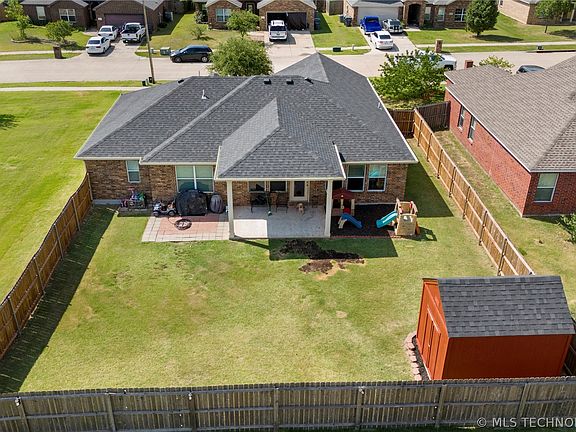The kitchen has granite countertops and the kitchen, dining, and living areas are designed with an open concept layout, perfect for entertaining or family gatherings. Out the patio door you will find a covered patio with fan & a backyard complete with a wooden privacy fence and a small storage building. The home also includes a two-car garage, offering ample parking and storage. Seller is family of listing realtor OK LIC #140843. See reserved items.