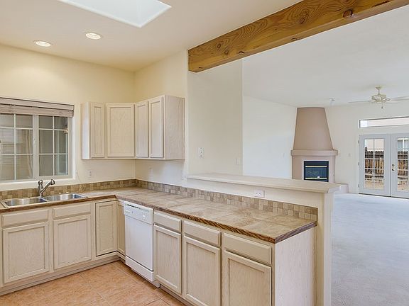 One owner home, built in 2002 with 1,792 +/- square feet of living space and move in ready! Tucked in on a quiet street away from traffic noise in Tierra Contenta. Open concept floor plan, easy entertaining between kitchen, dining room and living room. Kitchen has newly upgraded tile counter tops and a stainless steel sink. Skylights and large windows provide plenty of natural light. Kiva fireplace in the living room next to a set of french doors leading out to the completely fenced in backyard. Two good sized bedrooms with a shared bathroom. Generously sized master suite with private bath, large walk in closet, large bath tub and walk in shower. French doors from the master suite also lead out to the back yard. Nice separation between bedrooms for privacy. Radiant in floor heating system, evaporative air conditioning and a heated two garage. Direct entry from the garage into the kitchen makes it easy to haul in the groceries. This home has been well maintained and cared for and includes a new spray foam roof with a transferable warranty good until July 9, 2027! This home is exceptionally priced for the neighborhood, perfect starter home for first time home buyers looking to live in comfort on the south side of town.